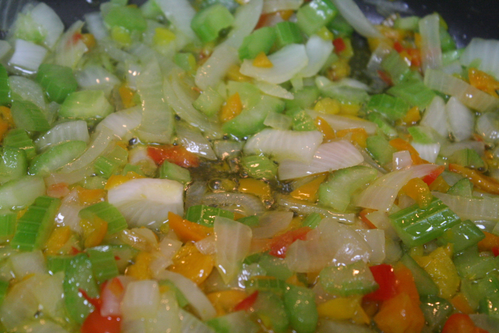 So you want the trinity mixture to resemble about this, if not a little more cooked down.